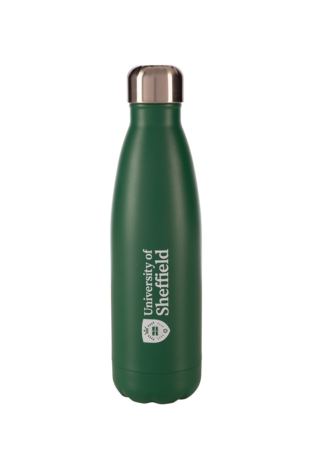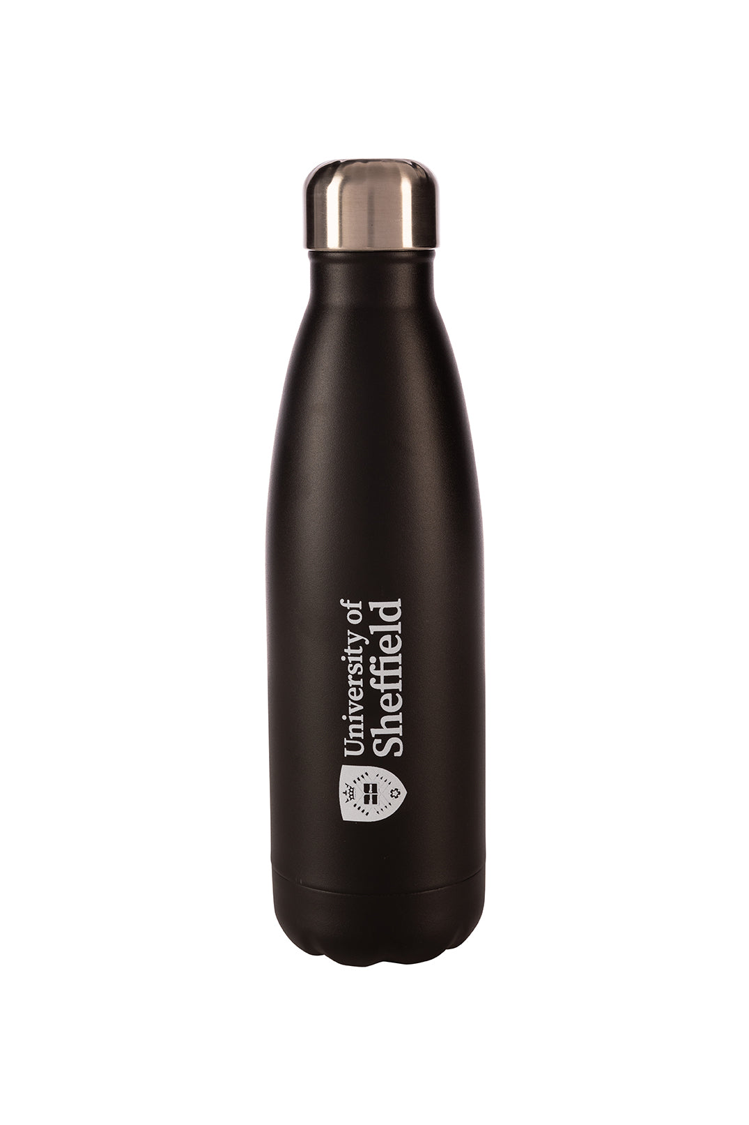 Stay hydrated in style with this University of Sheffield double-walled bottle. Keeps your drinks hot or cold for hours. Featuring the official University of Sheffield logo printed to the side, this bottle comes with a leak-proof screw cap.