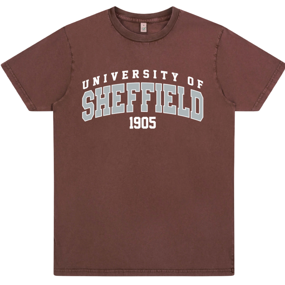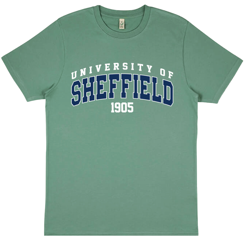 Represent your university in style with this University of Sheffield t-shirt. Made from soft and comfortable 100% organic cotton fabric, this tee is perfect for everyday wear. The iconic University of Sheffield USA chest print logo is proudly displayed on the front. Available in a variety of sizes and colours.